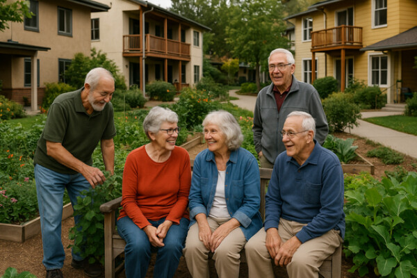 은퇴한 노인들이 뜻이 맞는 사람들과 땅을 사서 함께 설계·건설·운영하는 노년층 주거 공동체 '코하우징 커뮤니티(Cohousing community)'. 사진 챗gpt미국 노년층 사이에서 가족이 아닌 사람과 함께 집을 공유하는 주거