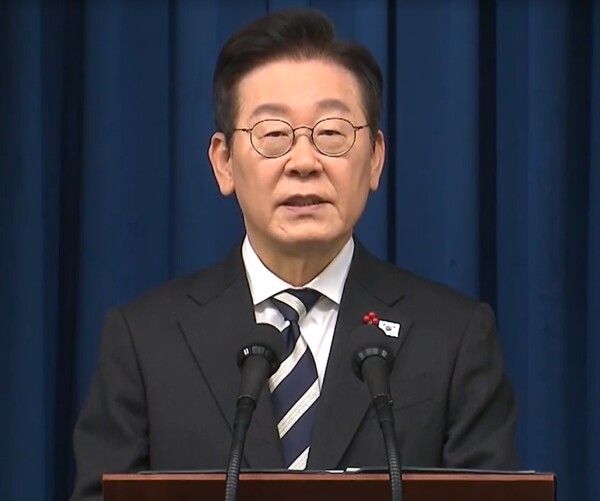 이재명 대통령이 3일 서울 용산 대통령실 청사에서 ‘빛의 혁명 1주년, 대통령 대국민 특별성명’을 발표하고 있다. 이재명 대통령은 3일 “불법 계엄을 물리치고 불의한 권력을 몰아낸 점은 세계 민주주의 역사에 길이 남을 일대 사건...