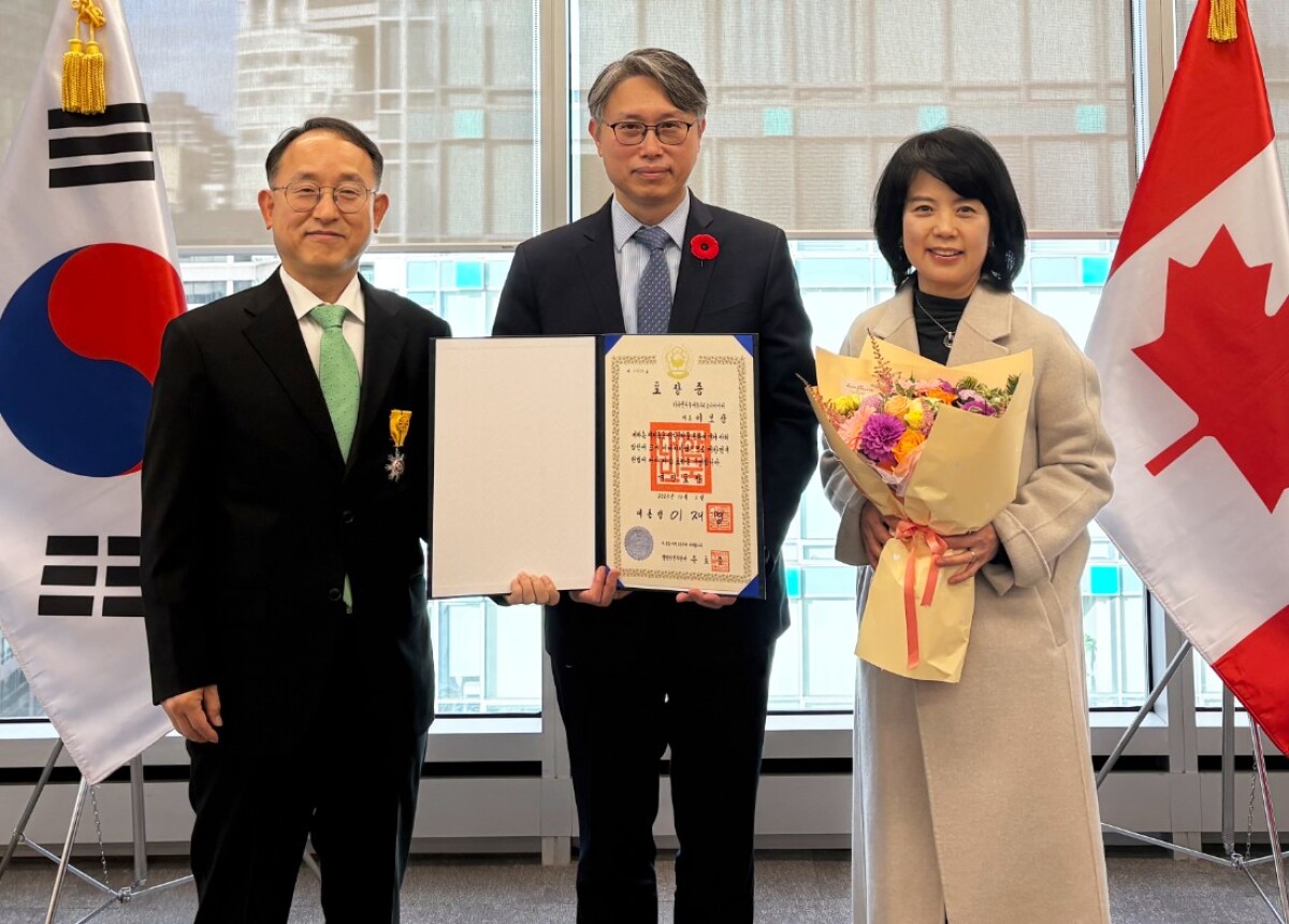 견종호 주밴쿠버총영사는 7일 총영사관에서 이보상 대표에 대한 국민포장 전수식을 개최하고, 동포사회 발전에 기여한 공로에 감사를 표했다.