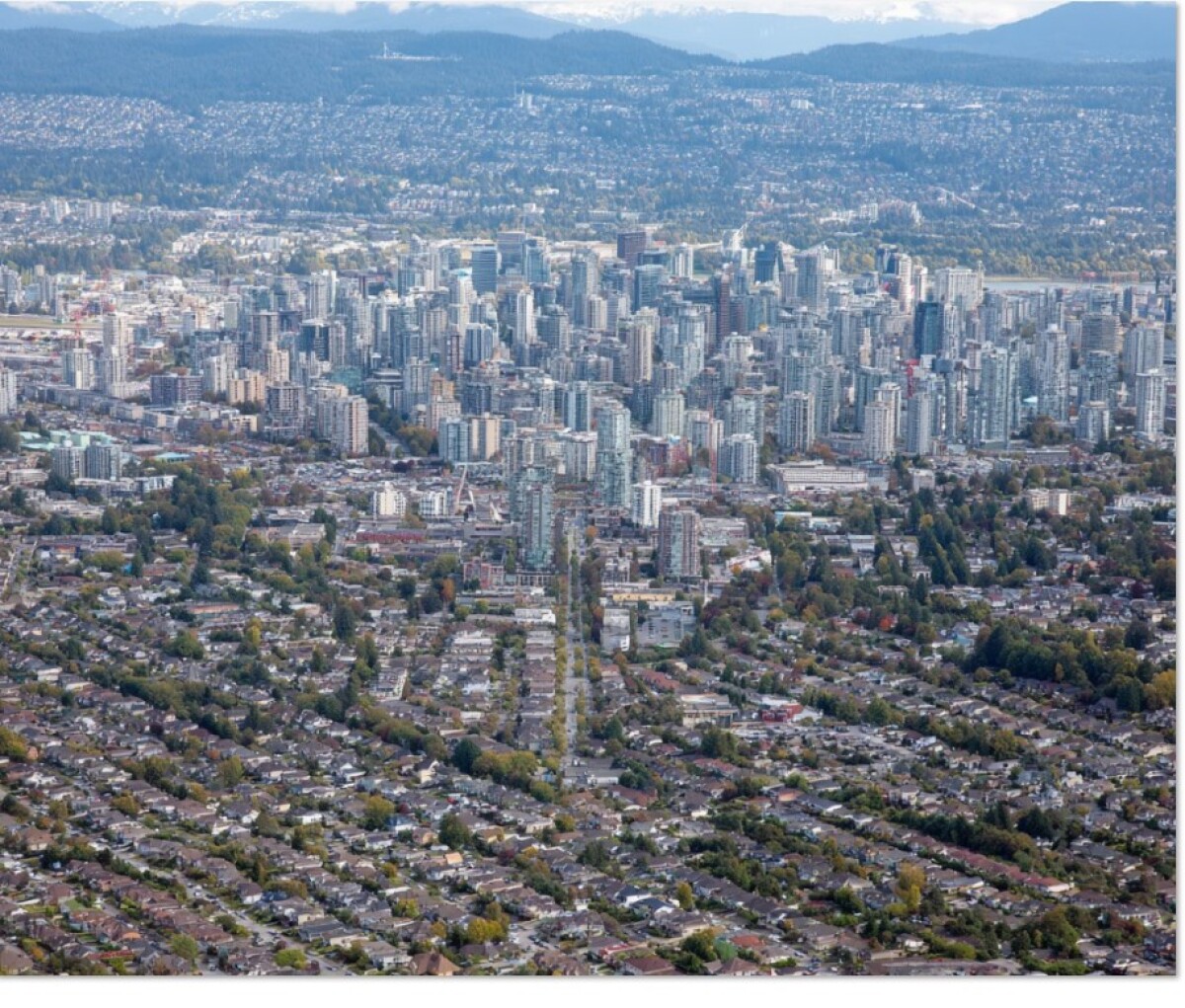 메트로 밴쿠버의 지리적 제약도 이런 흐름을 뒷받침한다. 도시의 북쪽은 산맥, 동쪽은 프레이저 밸리와 산지, 남쪽은 미국 국경, 서쪽은 조지아 해협으로 둘러싸여 있어 외곽 확장이 사실상 불가능하다.